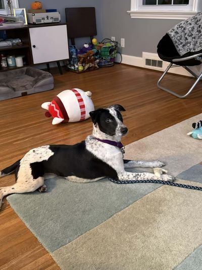a 9 year old Boston terrier mix whose owner had to go into a nursing
