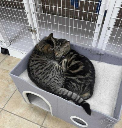 We would be so happy if these two gentle cats could go home together.When two cats are adopted at the same time the fee for the microchip is waived for the second adoption. Please come in and meet this adorable couple!